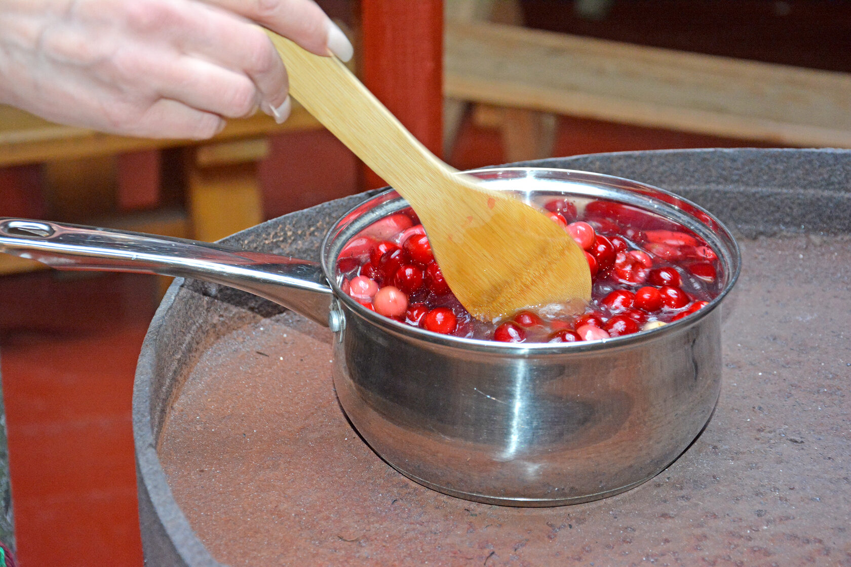 К нашему приходу печь в аиле вовсю топилась. Татьяна Хлыстова достала мешочек с замороженной клюквой, бросила ее в кастрюлю с водой и поставила на печь. А сама стала рассказывать, каким чудо-чаем будет сегодня угощать нас.